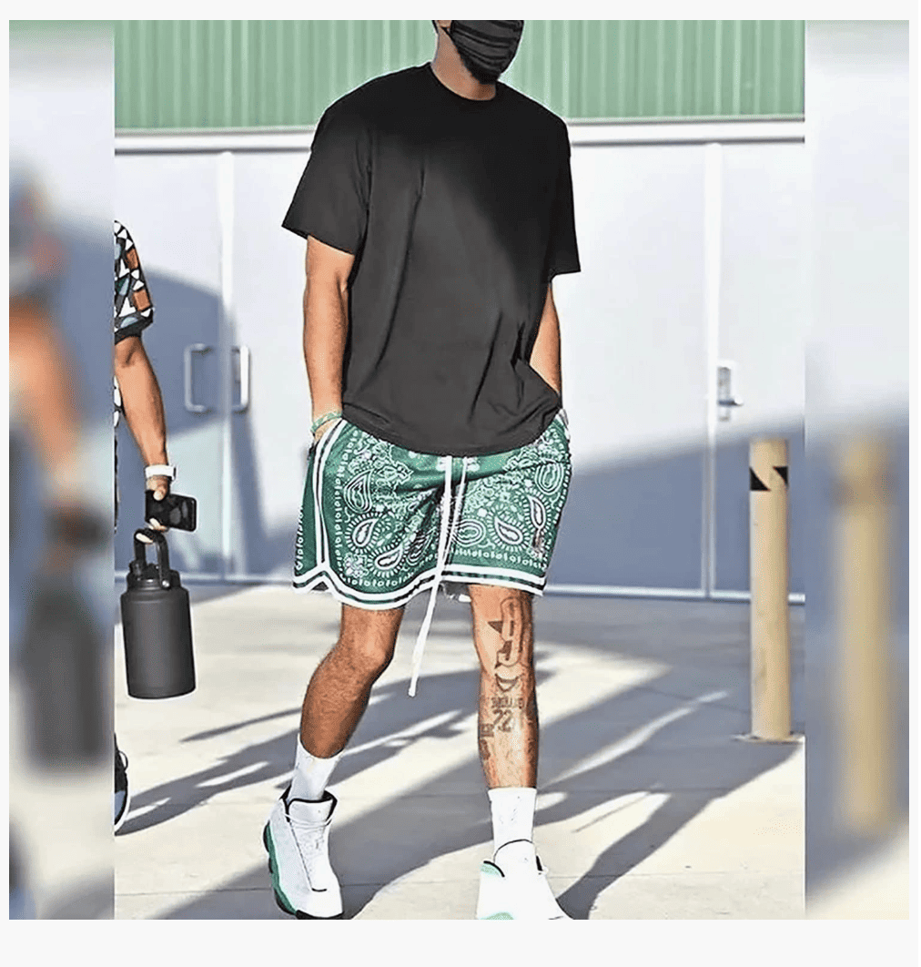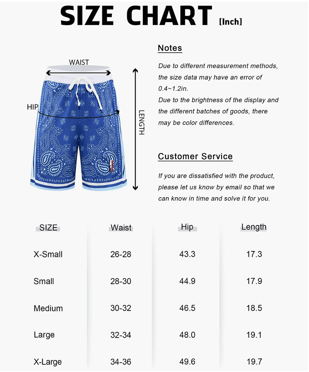 KIAYKL Men’s Basketball Athletic Shorts Paisley Mesh Sport Rhude Shorts Street Basketball Fashion Short with Pockets