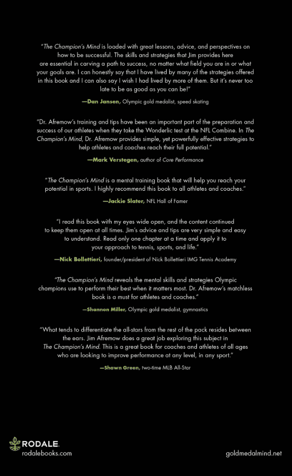 The Champion’s Mind distills actionable advice into clear and concise steps for athletes looking to find confidence, concentration, and mental preparedness—the mental edge that sets champions apart.